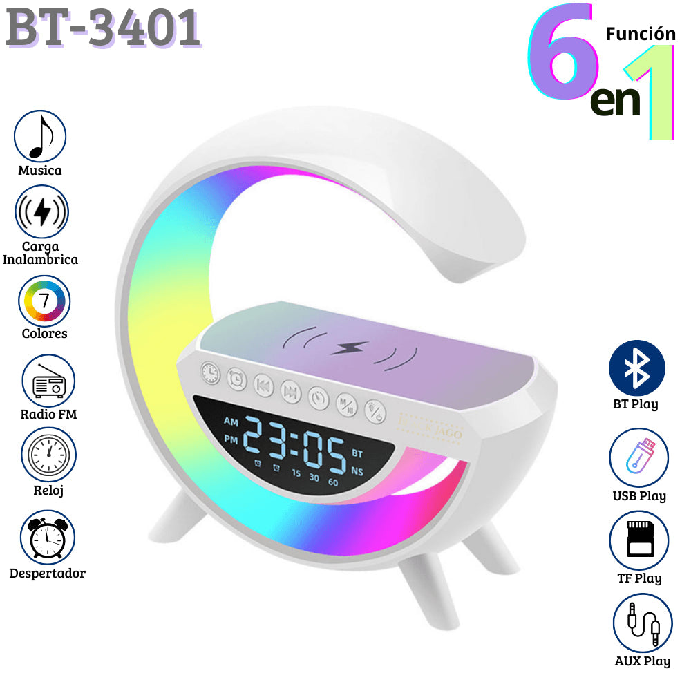 Mini Tipo G Lámpara de Atmósfera de Carga Inalámbrica con Altavoz Bluetooth Reloj Despertador Luz Nocturna Cargador Inalámbrico de 10W para Lámpara de Noche Reloj Máquina de Sonido Iluminación